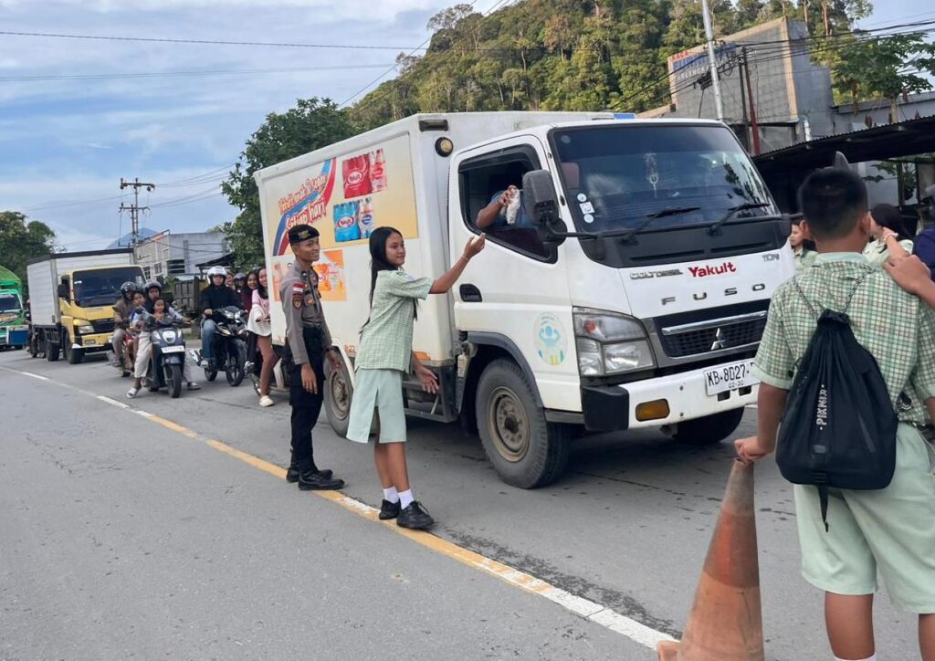 Kegiatan tersebut juga mendapat pengamanan dari personel Polsek Sekayam guna memastikan situasi tetap aman dan tertib. Kehadiran aparat kepolisian di lokasi bertujuan mengatur arus lalu lintas sekaligus memberikan rasa aman bagi para pelajar dan masyarakat yang menerima takjil.